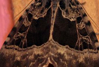 A Veneux, comme l'an dernier, les papillons semblent vouloir se réfugier au sous-sol (non enterré). Le premier arrivé, c'est Mormo maura, dit la maure, un grand papillon de nuit :