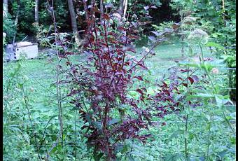 Il a grandi, il garde un beau feuillage rouge pendant toute la saison de végétation. Mais il n'a pas fleuri et cela ne facilite pas la détermination.