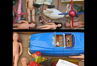 Au bord des routes du sud on a l'habitude de trouver des abricots, des pêches et des melons ...Mais dans les Pyrénées, Colette a trouvé des cageots de jouets ... Attachés et astiqués, alignés, répertoriés et colorés .Génial , naïf ... surréaliste ! Pour ceux qui ont envie de faire une belle ballade dans l'enfance, Colette vous recommande un bien joli blog ! ... http://www.tracesdenotreenfance.blogspot.com/
