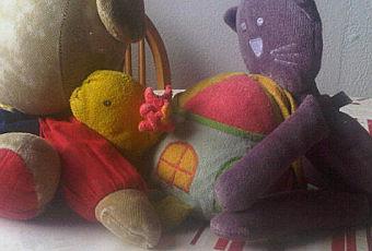 voici donc le lapin le plus vieux de la famille : doudou de Jules qui voyage encore avec nous... Tortue doudou de Rosalie et le Chat doudou de Violette !