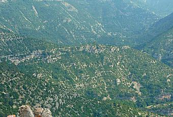 Dézoomer et voila le panorama d'en haut, face au Sud, au loin un restaurant et auberge mais la vue est beaucoup impressionante de ce coté ci que d'en face.