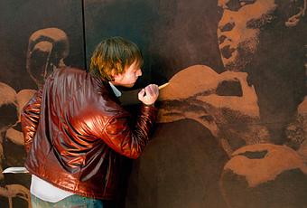 Mark Evans est un artiste peu commun, qui s’illustre dans un art nouveau et insolite. À l’aide de couteaux, il réalise dans d’immenses pièces de cuir des illustrations d’une singularité déconcertante.