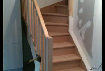 Voici les nouvelles fraiches ! - l'escalier a été posé ( enfin ! ) mercredi dernier en 1 petite journée ( photo 1 ). Il faut vite qu'on le vitrifie pour le protéger car bebinou adore lancer ses jouets dessus !! - notre plaquiste a aussi fini la cloison des toilettes ( photo 2 ). Il doit encore revenir cette semaine pour poncer ses murs et passer une couche d'impression ( peinture blanche qui prépare le mur à recevoir de la peinture ou du papier peint ). Ensuite notre merveilleux plombier viendra poser les toilettes, le carreleur devra finir ses plinthes de carrelage et l'electricien doit venir finir de mettre les fils dans la cloison. Ainsi nous aurons enfin fini avec les artisans, on va faire chauffer les chéquiers!! - la chambre de bebinou se termine doucement, les derniers lés de papiers ont été posés, le Lino est en place et les plinthes aussi ! Au niveau du mobilier j'ai trouvé de jolis meubles à la foire fouille : un bureau et une chaise, un tableau de dessin et un meuble de rangement avec plein de bacs. Pour le moment bebinou dort encore dans son lit parapluie car je dois lui peindre un lit de 1 personne qu'on a récupérer de chez Jerome. J'aimerais le peindre en résine de couleur gris métalisé. - Quand ce sera terminé on commencera notre chambre avec le parquet. Bon c'est clair ya encore un peu de travail mais c'est trop bon d'être chez nous !! Par Sweet mama - Publié dans : Notre nouveau chez nous