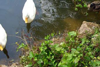 Je suis donc allée au jardin botanique de Marnay sur Seine samedi. J'espérais y être accueillie par le gentil couple de canards blancs. Jusqu'à présent, et depuis plusieurs années, ils étaient toujours là au bord de l'étang pour saluer le visiteur :