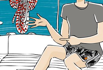 “Couille de loup” : terme marin désignant une façon de lover (enrouler) un cordage et de l’attacher au balcon (ou à la filière)