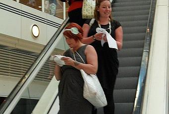 Je ne sais pas si vous étiez au courant mais le 3 septembre dernier était la journée internationale du Je brode en public. Je l'ai complètement loupée, mais un petit groupe de furieux a mis des photos délirantes en ligne sur Flickr. Certaines sont à mourir de rire et vont vous décomplexer de sortir toile et fils dans un lieu public. L'une a même réussi à broder dans un avion. Ce n'est pas un exercice difficile en soi, mais comment a-t-elle passé les barrières de contrôle avec son aiguille et ses ciseaux ?