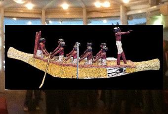 Une mouche virevolta autour du drogman qui la chassa d'une main leste, avant de traduire les paroles d'Ali qui, d'une voix traînante, confessa qu'un jeune homme était passé le voir quelques jours auparavant pour lui vendre une statuette et une pirogue en bois qu'il avait posées sur une étagère. Louis émit un Oh de délectation quand il aperçut l'oushebti et la maquette funéraire, forte d'une quarantaine de centimètres qui, bien que la peinture en fût partiellement écaillée, demeurait dans un état de conservation remarquable.