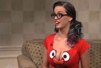 Vêtue d’un t-shirt ultra décolleté à l’effigie d’Elmo (personnage vedette de Sesame Street), la belle Katy Perry apparaît dans un sketch où elle joue l’ingénue provoc.