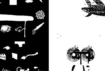 D'abord je créer sur papier mon image en prévoyant la superposition de trois calques (trois couleurs). Les dessins font l'objet de trois scans différents que je monte sur photoshop pour prévoir les différents jeux de mélanges / superpositions / encastrements.