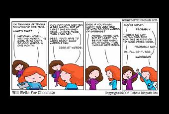 Et puis il n’y a pas que ça, il y a le soutien de mes collègues auteurs blogueurs, le soutien des différents forums sur le site du Nano, le soutien du créateur du Nano avec ses vidéos, et les rencontres organisées dans la vie réelle. Reste à voir si je vais me dégêner et y aller. D’une, la plupart des participants ont moins de 25 ans et de deux, je ne suis pas vraiment sociale avec les gens que je ne connais pas. Il restera les rencontres au salon du livre de Montréal.