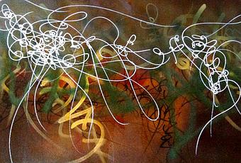 As says on Wikipedia, Asemic writing is a wordless open semantic form of writing. This new work is close to Abstract Calligraphy and abstract Graffiti.Abstract writing is like a choregraphic doodle for Matox.
