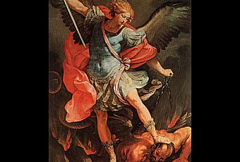 Notre Père, Je vous salue Marie (3 fois), Gloire au Père. Saint Michel Archange, de votre lumière éclairez-nous. De vos ailes, protégez-nous. De votre épée défendez-nous.