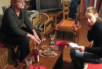 Apres ces dures épreuves, nous nous sommes rendues toutes belles et pomponnées à LIMOGNE EN QUERCY faire des emplettes puis nous avons déjeuné (vous savez ou?) de saucisse grillée de Toulouse (au feu de bois) , tagliatelles au parmesan et fromage BETHMALE (délice caprice de CECILE).