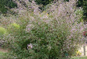 C'est un arbuste très peu connu capable d'illuminer le jardin en automne car il fleurit en septembre et octobre. Je ne le connaissais pas mais cette pluie de fleurettes roses m'a attirée et j'ai succombé à son charme.