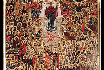 Cette fête est pour nous l'une des plus belles : extraite du caractère dramatique des fêtes qui ponctuent l'histoire du salut, elle nous porte à nous pénétrer de cette vérité, aussi ferme que le roc, paisible et joyeuse, que notre vie est dans la communion de ces saints, avec et par le Christ. Cette vie de peine, elle, va passer, avec ses misères sans nombre, ses déceptions, le témoignage insolent de l'arrogance des méchants, ses tristesses, ses injustices. Déjà ouverte par la résurrection du Christ, déjà partiellement vécue par nombre d'amis de Dieu dès ici-bas, la Vie véritable éclate de joie dans la Cité du Ciel. Bien des nôtres y vivent déjà, bien des nôtres sont à ses portes, et nous prions les uns de nous secourir, et nous prions pour les autres afin qu'ils entrent dans la joie de leur Sauveur.