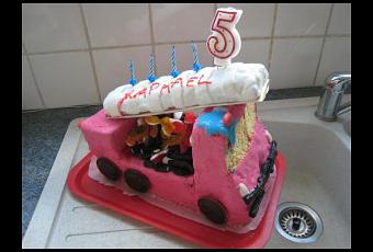 … le Gâteau Camion de Pompier ! (désolée du retard, mais Chéri avait oublié l’appareil photo chez mes parents…