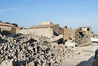 Les fondations du grand édifice, construit au II e siècle avant Jésus-Christ, n'ont pas résisté aux intempéries. Crédits photo : ROBERTO SALOMONE/AFP