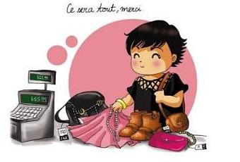 Illu issue du livre Serial shoppeuse, qui m'a inspiré ce titre, et qui m'a l'air drôlement fun.