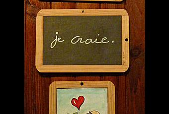 C'est à l'initiative du "Tempory Art Parking" que l'établissement a mis à dispositions des artistes des ardoises afin de pouvoir s'exprimer librement sans pour autant les exonérer de payer leur consomation : business is business !