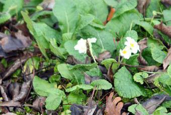 C'était hier à Romilly. Mon œil de lynx quand il s'agit des végétaux les a repérées malgré l'éloignement. Cela se passe sur le terrain du voisin, un voisin que je ne vois jamais, de l'autre côté du chemin, et les photos sont prises de loin à travers le grillage. Ce sont bien des primevères en fleurs en novembre ! Ce ne sont pas des primevères élevées en serre et tout juste replantées. Non, ce sont de vieilles primevères que j'ai toujours vues là, spontanées, naturalisées, ensauvagées. Pourquoi fleurissent-elles maintenant ? Elles n'ont pas encore vu passer l'hiver, il n'a même pas gelé une seule fois. Et que va-t-il leur arriver au premier gel ?