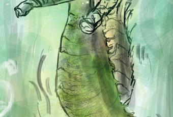 J'ai découvert le blog Half-Love il y a un peu plus d'un mois. J'ai tout de suite été capté par la poésie et la délicatesse de son style. Je suis également très fan de sa façon de coloriser ses illustrations. Il a donc ici repris ce qui est certainement la planche la plus trash de mon blog (si bien que c'est la plus culte ?) pour en faire quelque chose de beaucoup plus poétique...