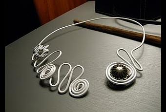 Ce collier est réalisé en fil d'aluminium blanc et perles argentées