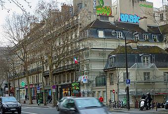 High up over the roof on the boulevard Beaumarchais a Street Art between Bastille and the