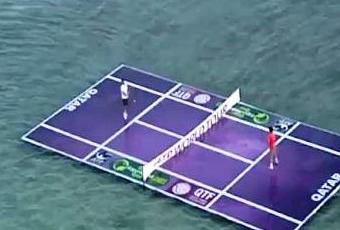 "Ennemis" respectueux sur les courts de tennis, Rafael Nadal et Roger Federer s’apprécient beaucoup en dehors. C’était donc un plaisir pour eux de partager cette étrange expérience de jouer sur l’eau, en plein Golfe Persique ! Voici la vidéo.