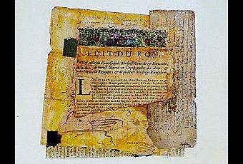 Une nouvelle série dont les sujets seront des compositions mises en scène autour d'un grand fragment principal : ici un édit du Roy sous Louis XIII
