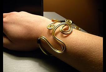 Bracelet en fil d'aluminium doré avec quelques touches de fil noir