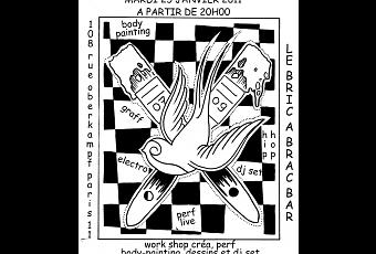 Toujours aussi novateur, défiant les challenges culturels, Le Bric à Brac Bar, établissement pluridisciplinaire, propose aux néophytes, aux curieux, aux passionnés d'art moderne de découvrir l'univers de 2 artistes émanant de l'art du graff et du Street Art : DJA'LOUZ, le roi de la looze qui fait des jalouses et son comparse Frenchink A.K .A s'associent lors de sessions, perf en live body painting, street art et initiation à « ...l'aérosolée ».