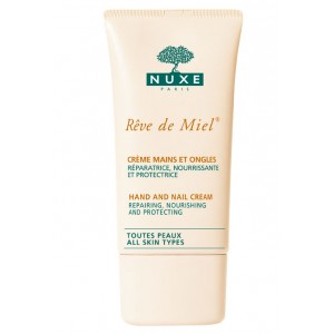La crème pour mains et ongles Rêve de Miel NUXE, cette crème qu’on a plus besoin de présenter, tellement c’est la meilleure qui existe au monde (j’exagère même pas), tellement elle sent divinement bon, tellement elle hydrate les mains à merveille sans laisser de film gras….Bref, inutile de vous dire que pour moi on ne fait pas mieux en matière de crème pour les mains. Elle est composée de miel, huiles végétales, vitamine E, donc le top du top. J’ai un tube chez moi, un dans mon sac à main, un dans mon sac de sport, un autre tube au bureau (bizarrement c’est celui qui part le plus vite, et bizarrement c’est surtout mes collègues hommes qui me la piquent…). Elle me suit partout depuis des nombreux mois. Mais depuis peu, Nuxe a décidé de changer le packaging de cette crème mythique. Et là… déception. Avant elle se présentait comme ça :