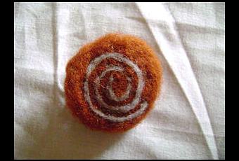 Toujours des yoyos en soie et des perles en laine, un peu de laine bouillie ou tout simplement des galettes feutrées toutes simples.