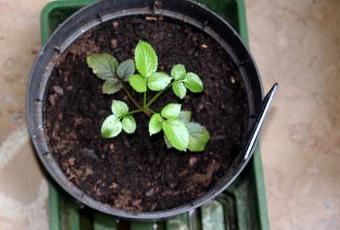 Voici mon premier succès, peut-être le seul. Ce petit bébé sureau a une originalité : ses 2 premières feuilles ont des reflets rouges. Restes d'anthocyanes du fruit ?