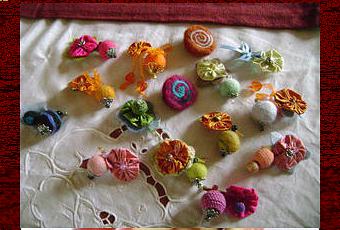 Encore des petites broches :des couleurs différentes, des apprêts,des perles et toujours des yoyos en soie sauvage :