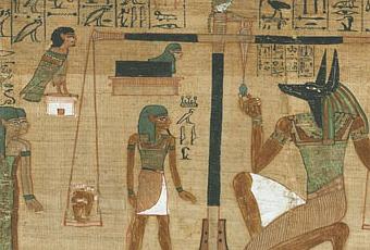 Le Jugement des morts en présence d'Osiris, de Thèbes, en Égypte, 19e dynastie, vers 1275 avant J.-C. (The Trustees of the British Museum)