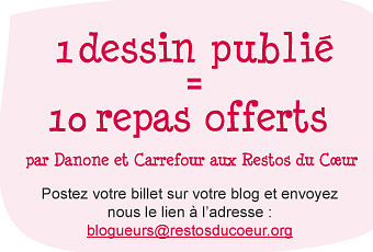 Et, pour chaque blogueur décidant de publier un billet éditorialisé sur la collecte, Danone et Carrefour s’engagent à offrir 10 repas aux Restos du coeur.