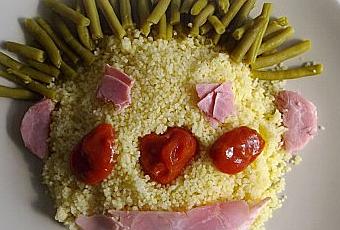 Alors voici la tête de Mami (semoule, sauce bolognaise, jambon et haricots verts...)