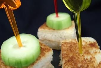 Surmonter chaque carré d'une tranche de concombre, ou éventuellement