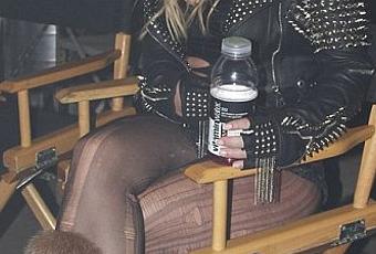 Sur cette image, on voit Britney en pause, assise sur une chaise, buvant une boisson. Le style vestimentaire Rock'N'Roll de la chanteuse nous donne déjà des indices sur la vidéo. On vous tient au courant !!!