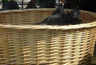 Le soleil est toujours généreux, désormais la vie est au jardin ! Le premier 'Scot' profite du bon air ( et de sa panière qu'il a du mal à quitter !!)