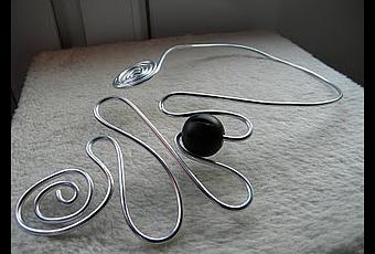 Collier ThèbesCollier en fil d'aluminium argenté et perle noire