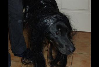 Et puis je les vois tous en train de mettre quelque chose sur leur tête, nul je vous dis, ah ils étaient beaux ! Et voilà que cette chose m'arrive direct dessus, même Symi ne comprenait pas ! Vous avez vu l'allure ? On dirait un lévrier afghan noir !!! Et mal coiffé en plus !