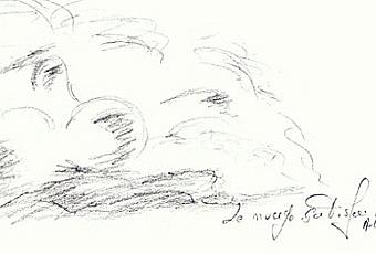 De gros nuages nonchalants, les yeux cachés, bouches au large sourire, avancent en crabe. Au-dessus, un esprit qui a l’air d’un brave type avec son gros nez, moutonne dans le blanc