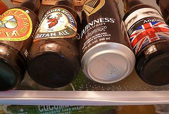 En ouvrant mon frigo peu de temps après mon retour de Montréal, j'ai trouvé qu'il y avait de quoi faire une photo, non pas typique, mais au moins originale du contenu de ma caverne d'ali-baba. Plein de bières, dont l'Anglaise et la Montréalaise que j'ai rapportées de Montréal, de la Propeller et de la Alexander Keith qui viennent de Nouvelle-Écosse, et des bières anglaise et irlandaise. Ah tiens, il n'y a pas de bière de Colombie-Britannique, cette fois... Il faudra que j'en parle, un jour.