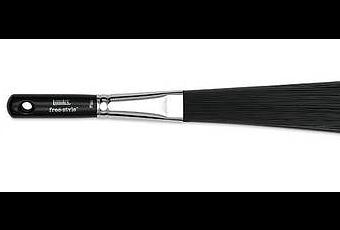 La brosse « Free style Splatter Flat n°1301102 » de Liquitex a été mise sur le marché, à destination des acrylistes. Cet outil est constitué de fibres longues en nylon très rigides. Elles n’absorbent pas l’eau et permettent un geste nerveux. Le pinceau se nettoie très facilement. Il est large de 2 cm, les fibres mesurent 12 cm, le manche et la virole également; soit au total 24 cm.