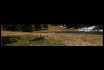 Pendant ce temps, je marche à l’eau claire et à dix kilomètres à l’heure. Autour de moi, il n’y a plus de feuilles mais seulement des aiguilles et l’odeur de la sève fraîche qui irrigue les veines des sapins. L’essence de poix qui suinte des branches blessées. Et par-dessus tout, le merveilleux parfum de l’écorce de mélèze, sucré, roux et rempli des sucs de la terre qui a séché au soleil. Ainsi chargé d’essences naturelles, j’ai un regain de vitesse. Le vélo s’allège et la pente diminue. À cette allure les mètres dégringolent comme qui badine et la forêt s’ouvre pour faire de la place aux pylônes égarés sur l’herbe rase. Nous sommes en avril, et pourtant les skieurs ont disparu depuis des mois ou peut-être des années. Il ne reste que des traces métalliques. Quelques taches blanches aussi. Des taches de neige perdues dans le bleu du ciel. Je m’approche. Je prends quelques grains transparents qui brillent dans ma main. Je goûte. J’ai dans la bouche la couleur bleue de l’hiver, un peu de sel, un peu de pierre, un peu de poussière laissée par le vent.