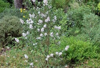Ce lilas est un tout petit arbuste, surtout dans sa variété 'Superba', la seule vendue en France. Il ne dépasse pas 1m50 et même, je n'en ai jamais vu de plus de 1m20. Il est mignon et très parfumé. Les cétoines dorées ne s'y trompent pas. Mais pas plus chez moi qu'à Paris ou à Ingrannes je n'ai vu des dégâts. D'ailleurs, à Romilly où elles abondent car je les respecte et ne tue pas leurs larves en les traitant de hannetons (dans la terre c'est du hanneton mais dans le bois pourri ou le tas de compost ce sont des larves de cétoines), j'en trouve dans les roses, surtout les rugosa, et les lis et elles ne les abiment pas.