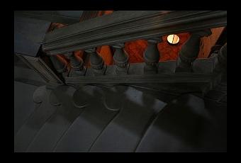 Il s’agit de l’escalier d’honneur de la bibliothèque de San Lorenzo à Florence, dessiné par Michelange. Comme Léonard, Michelange n’était pas que peintre. C’était un artiste complet : peintre, dessinateur, sculpteur, architecte. Il a aussi pas mal écrit et (mais là c’est ma mémoire qui me joue peut-être des tours) il me semble qu’il a composé deux ou trois trucs… mais je suis pas sûre.