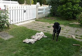 Pas faire la poubelle, pas manger la bâche, pas vider mes tapis, pas voler ce qu'il y a sur la table, pas ouvrir l'eau, le gaz et les portes, que des interdits !!! Hein ? Oui j'ai des choses que je peux faire ? Ben voyons ! Assis, couché, pas bougé, viens là !!! Tu parles ! Le canapé ? Le transat ? le lit ? Heureusement quand même vu l'état de ma couverture !!! M'agace ma maîtresse, à croire qu'elle a toujours raison et que je ne fais que des bêtises ! C'est faux et je le revendique bien fort !!!